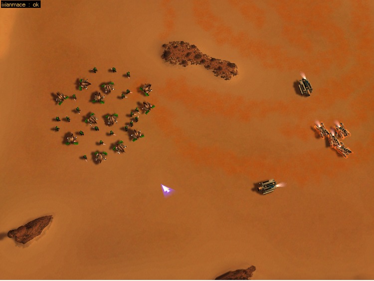 Get your mortar to your opponents rock INSTANTANEOUSLY as fast as you can! IF your mortar deploys on his rock before his saws can get out, you win, pretty much hands down every time. If he has saws that are preventing your mortar from moving in, then you can deploy your mortar behind your dustscouts and use your dusties as shields. Buzzsaws will not be able to run them down and if buzzsaws attack your dust, they will explode like balloons when the mortar hits. Your big goal on a small map is to get mortar on your opponents Harkonnen rock ASAP. Then the game will be yours.
